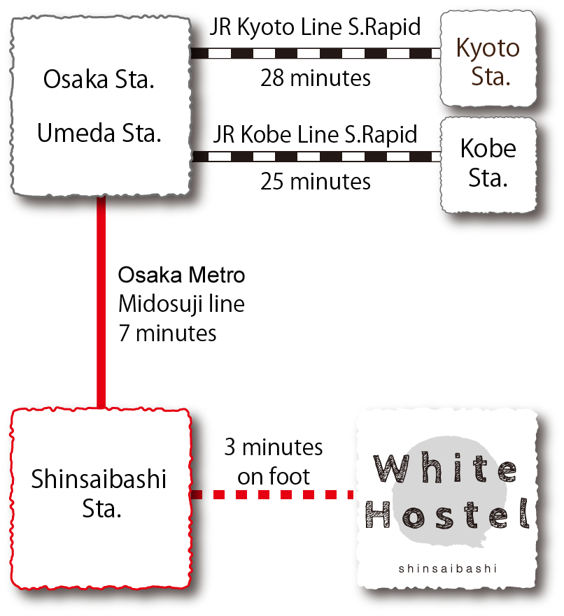 입구에 테이블과 의자를 준비하고 있습니다. 화이트 호스텔 신사이바시에 도착하면 일단 안심 한숨하십시오.