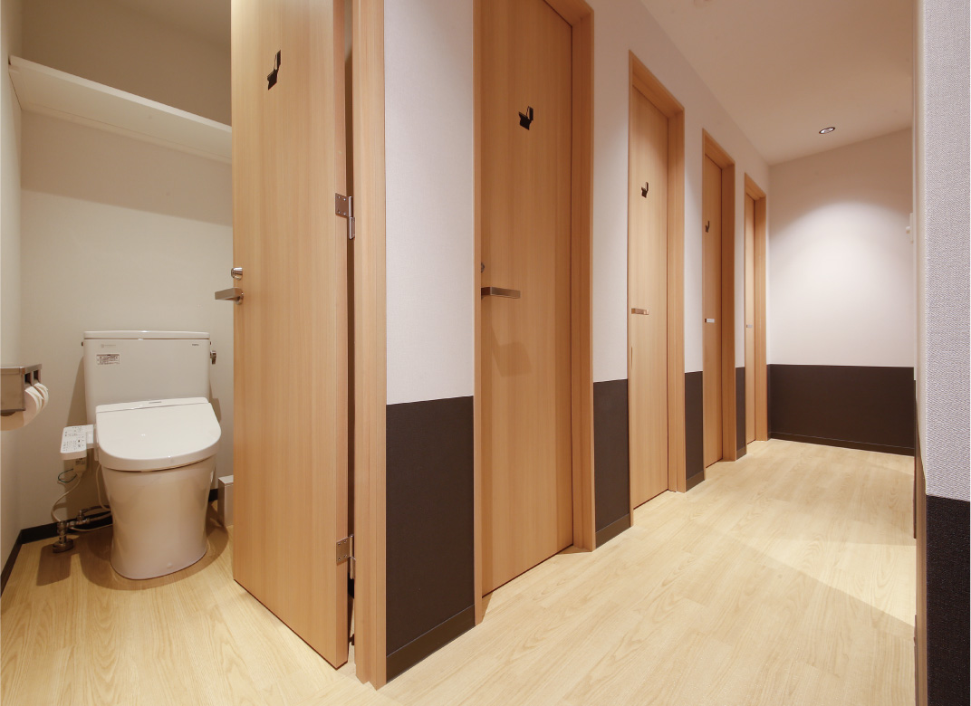 2층,3층의 샤워 지역에서는, 샤워, 세면 볼과도 다수설치하고 있으므로, 아침 저녁이 붐비는 시간대에서도 안심입니다.